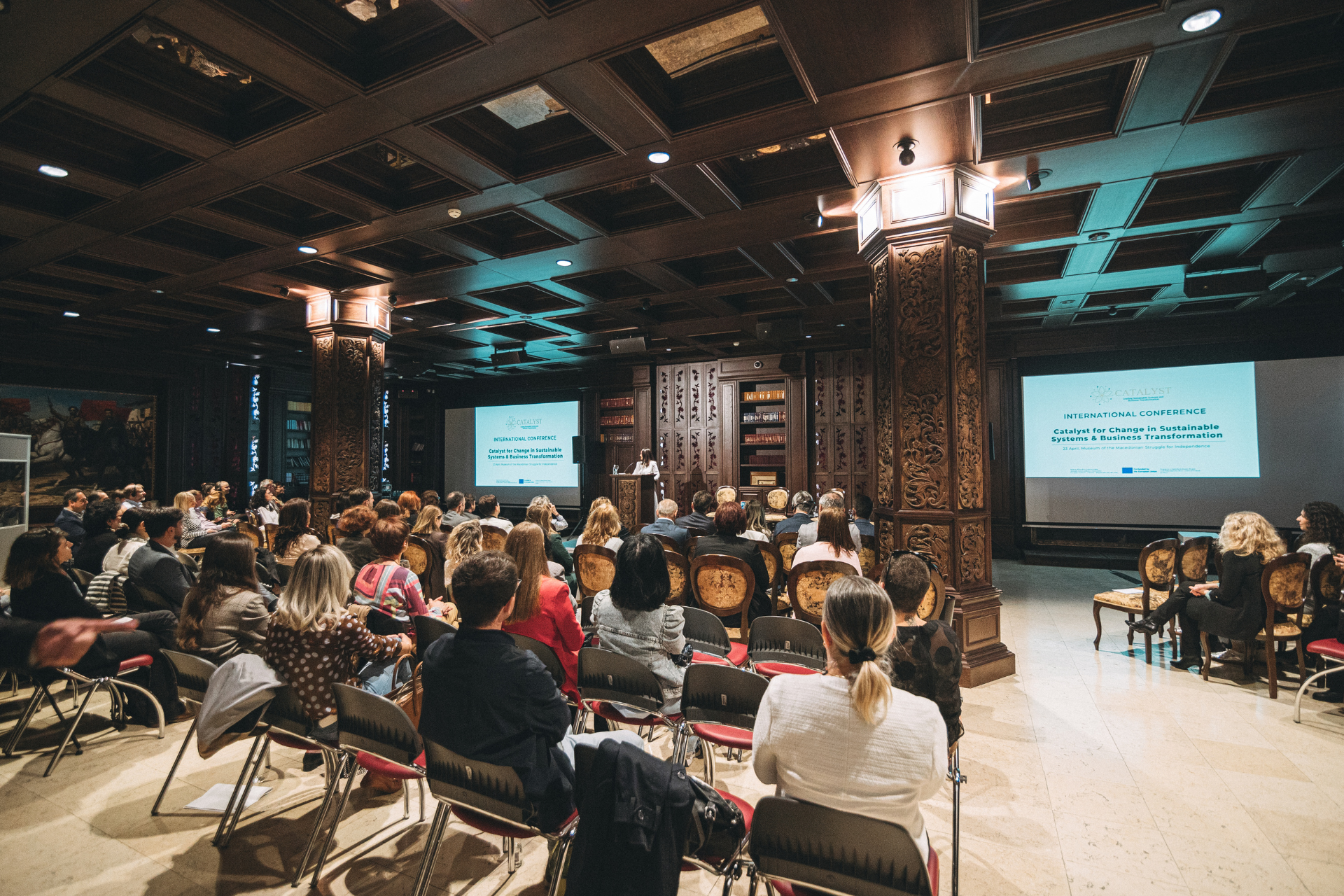 On April 23, 2026, the international conference “Catalyst for Change in Sustainable Systems and Business Transformation” was held at the Museum of the Macedonian Struggle, as the closing event of the four-year Erasmus+ project CATALYST.