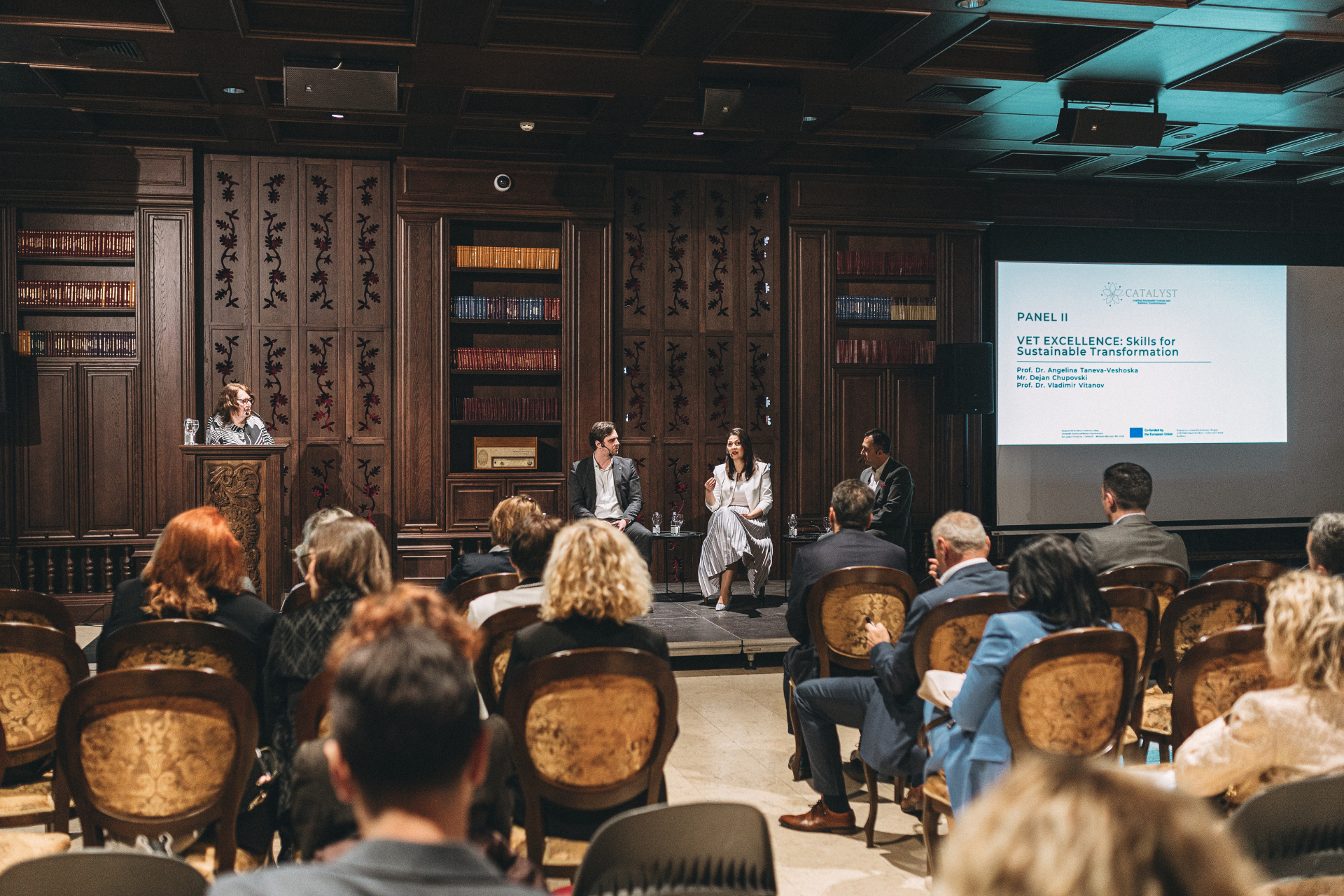 Prof. Dr. Angelina Taneva-Veshoska presented the CATALYST project — a European Centre of Excellence in Vocational Education and Training — which, over the four years, produced significant results, including a digital learning platform available at catalystplatform.net, with over 70 courses and 25 resources.